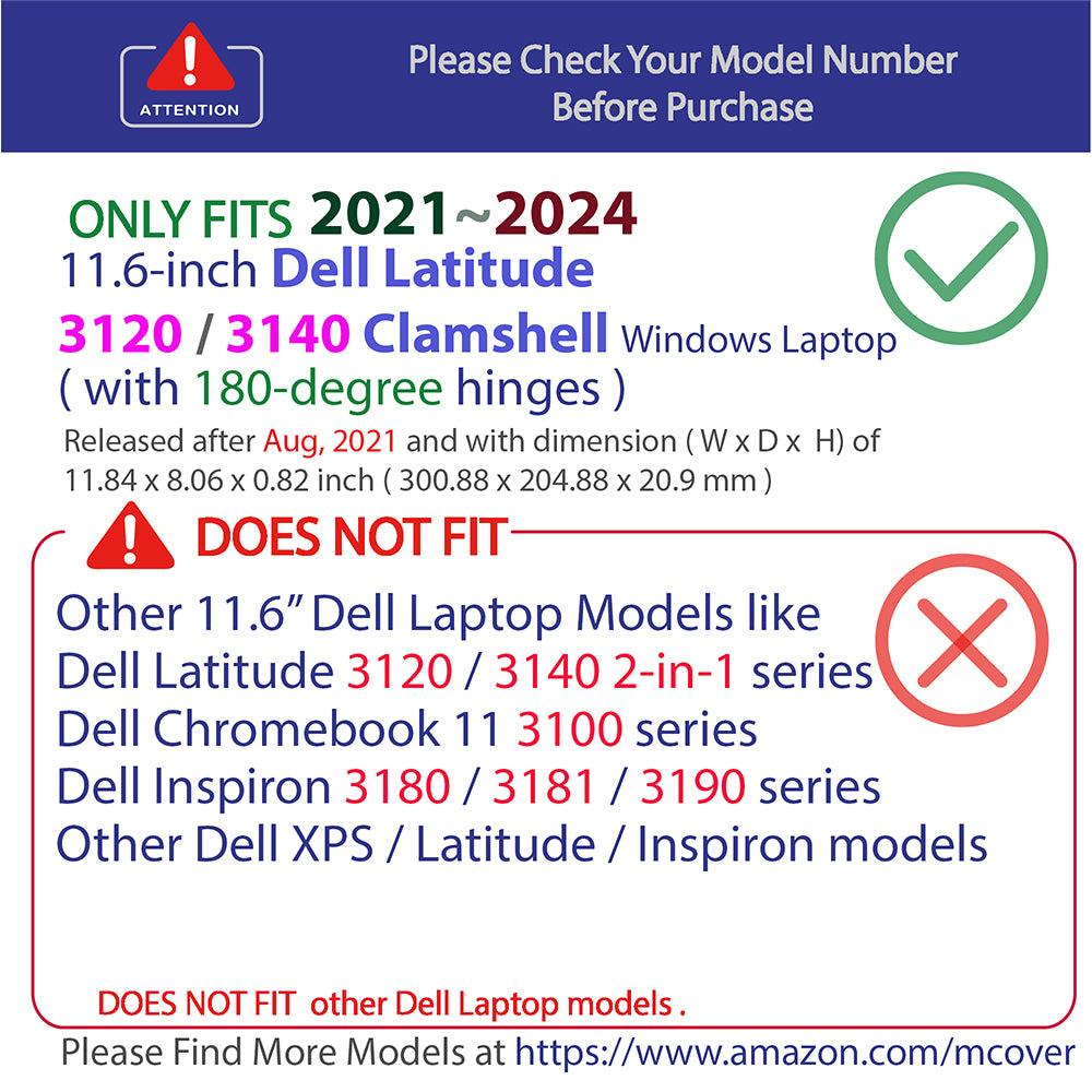 - Designed to perfectly fit the 2021~2024 11.6-inch Dell Latitude 3120 / 3140 Education laptop ( with 180° hinge ) and protect ALL corners.