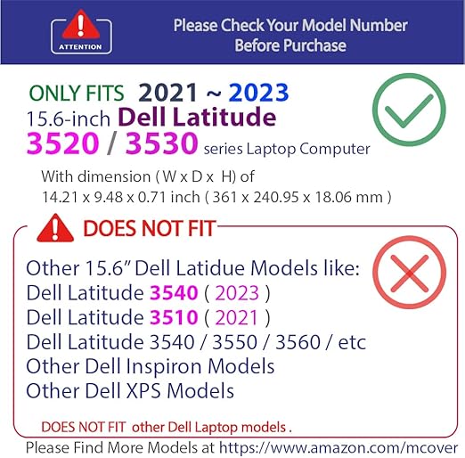 - Designed to perfectly fit the 2021-2023 15.6" Dell Latitude 15 3520 / 3530 series Laptop Computer with dimension of 14.23 x 9.76 x 0.71 inch ( 361.4 x 247.85 x 17.97 mm )