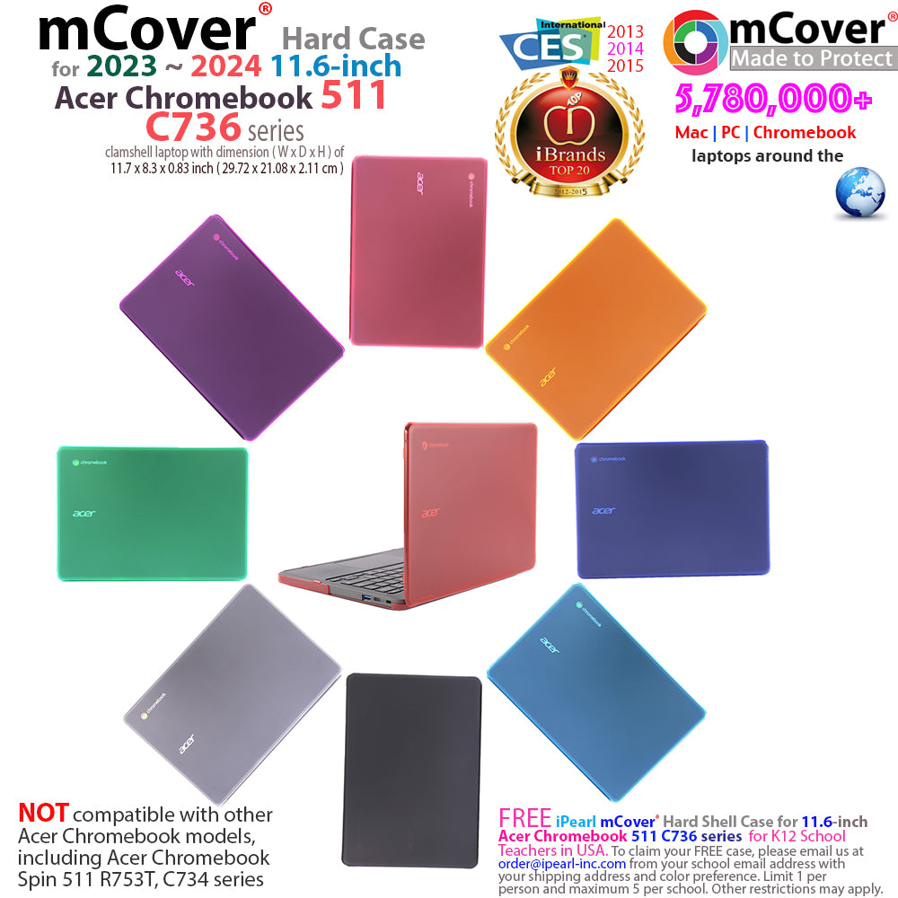 Made of high-quality translucent polycarbonate material which is shatter-proof and will protect your 2023~2024 11.6" Acer Chromebook 511 C736 series Notebook Computer all around