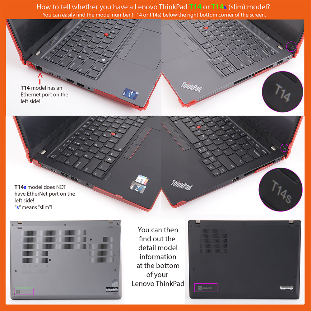 Designed to perfectly fit the 2023 ~ 2024 14-inch Lenovo ThinkPad T14 Gen 3 / 4 , P14s Gen 4 (with 180-degree hinge) with Dimensions (Width x Length x Height) of 12.51 x 8.93 x 0.70 inches ( 317.7 x 226.9 x 17.9 mm )