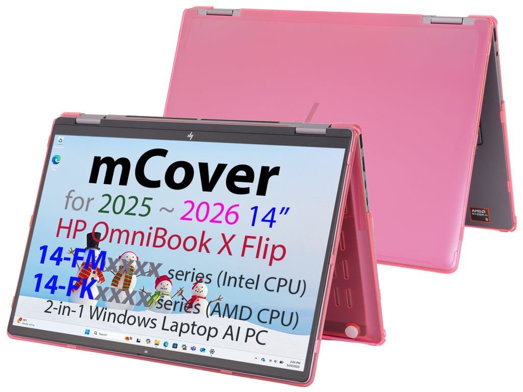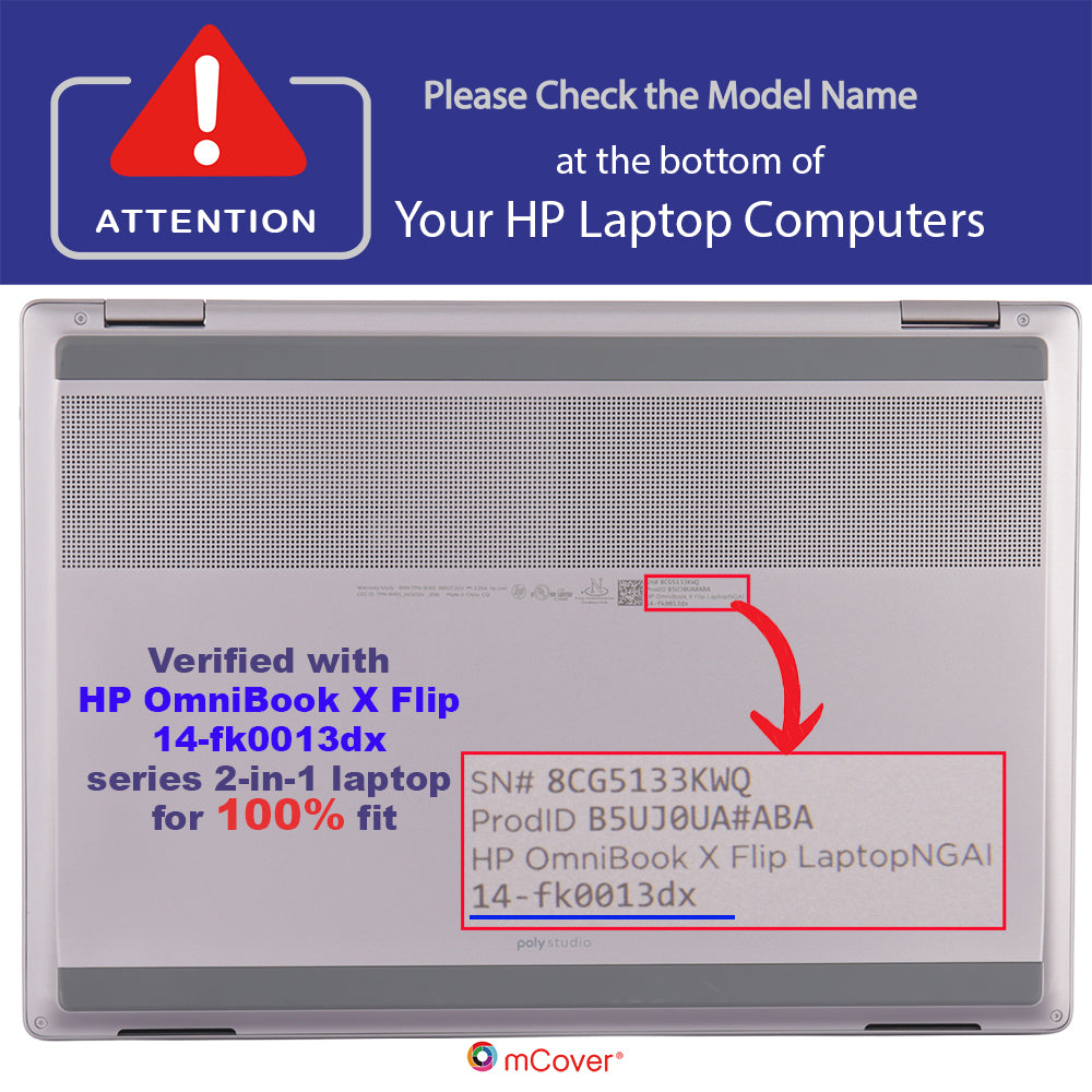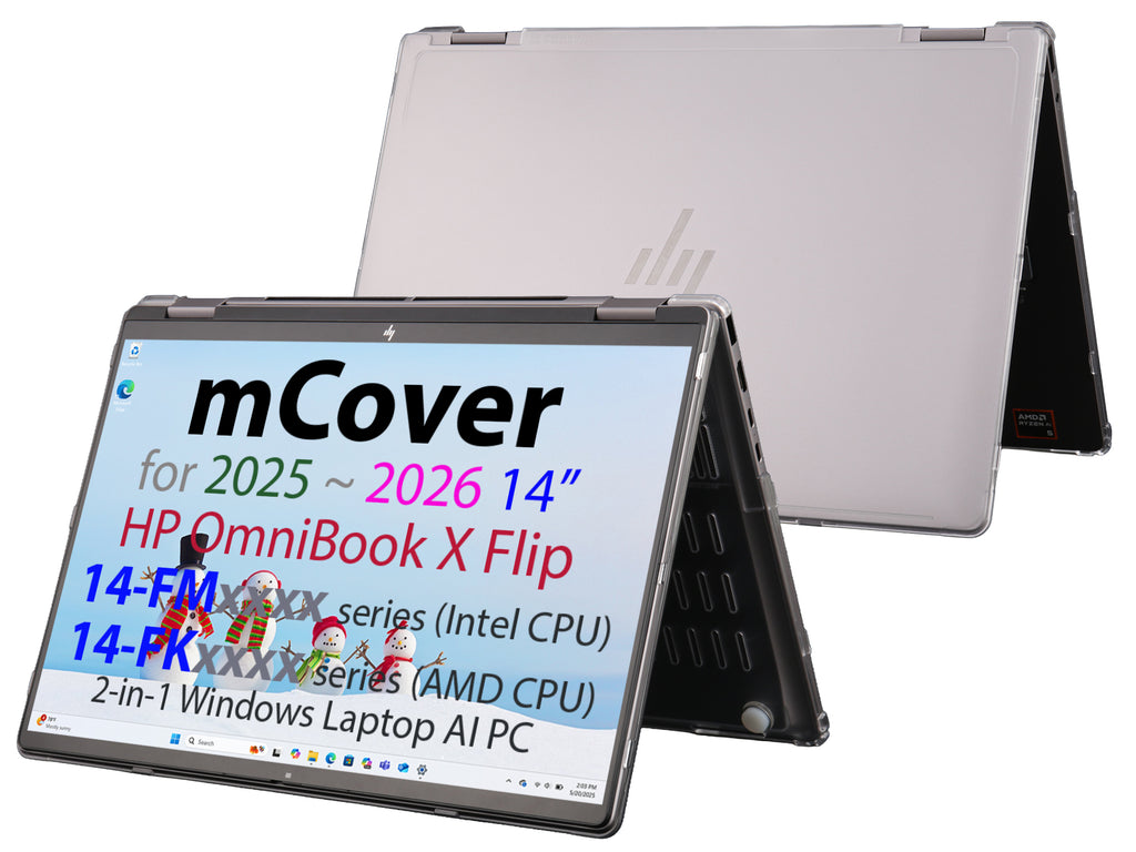 Made of high-quality translucent polycarbonate material which is shatter-proof and will protect your 2025 or newer 14" HP OmniBook X Flip 14-FMxxxx / 14-FKxxxx series 2-in-1(with the 360° hinge) Windows AI PC Laptop all around.