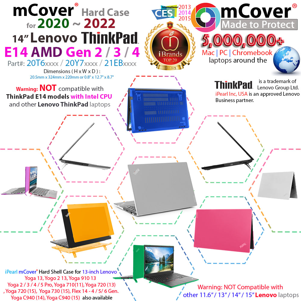 - Made of high-quality translucent polycarbonate material, which is shatter-proof and will protect 2020~2022 Lenovo ThinkPad E14 14-inch AMD Gen 2/3/4 Laptop computer all around.