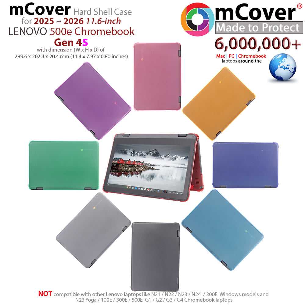 Made of high-quality translucent polycarbonate material which is shatter-proof and will protect your 2025 or later 11.6" Lenovo 500e Chromebook Gen 4s 2-in-1 Laptop against scratches and accidental damages